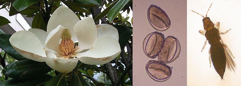 虫媒花で、コガネムシ類が花に集まっていることがあります。花粉を食べるアザミウマ類もたくさん付いていました。